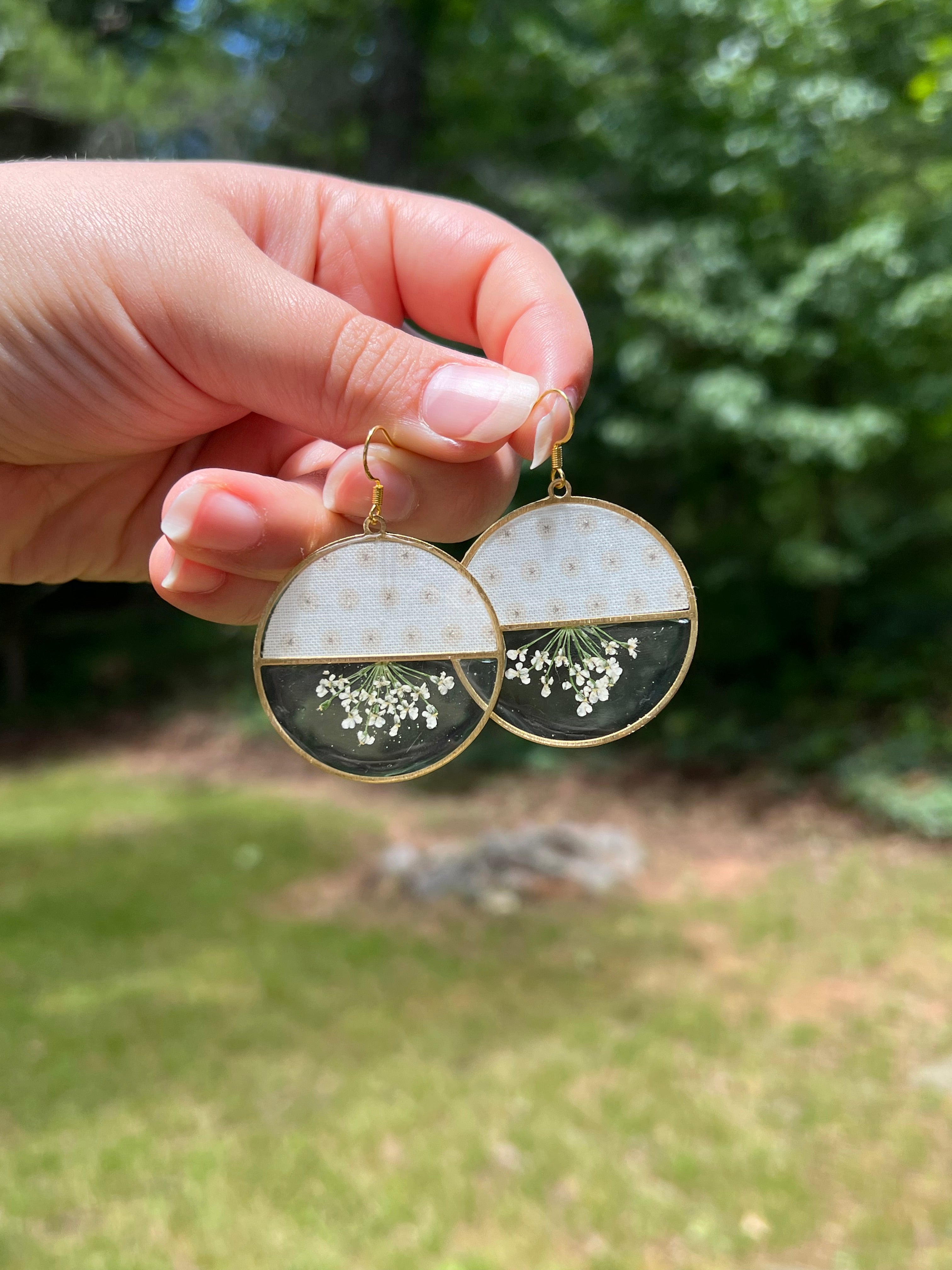 Featured here are earrings made from scrap fabric I picked up at a local quilt shop. I love giving new life to leftover materials and turning them into something beautiful. Stay tuned for more fabric earrings and upcycled creations!