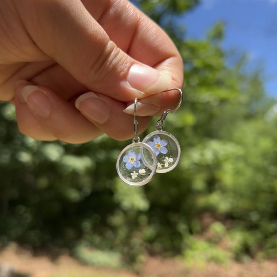 Delicate and meaningful, these earrings feature real pressed forget-me-not flowers preserved in clear resin and finished with stainless steel hooks. Their soft blue petals and minimalist design make them a subtle yet sentimental accessory—perfect for everyday elegance or meaningful gifting.